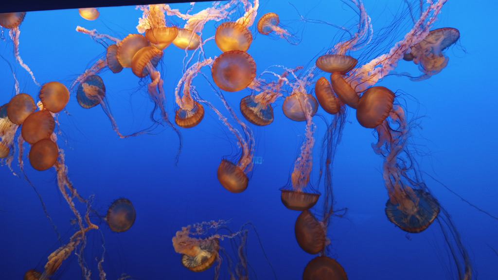 We stopped in Monterey, California to visit the Aquarium. They had a really interesting tank with a kelp forest in it, and from the aquarium's balconies facing the ocean we were able to see seals and sea otters. Plus - as this photo can attest to - I am a sucker for jellyfish. They are just so mesmerizing, and so unlike any other animals.