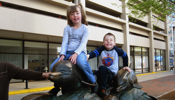 A couple of weekends ago, we took the kids to the Boston Aquarium on a whim. Unfortunately, none of the picture from inside the aquarium came out at all, but we did get this one from out in front of the aquarium. The kids really enjoyed seeing all the animals. They had a cool touch tank where the kids got to pet the rays. Sean really loved the jellyfish exhibit, too. It was crowded as all get-out, but we all really enjoyed it.
