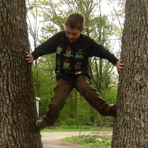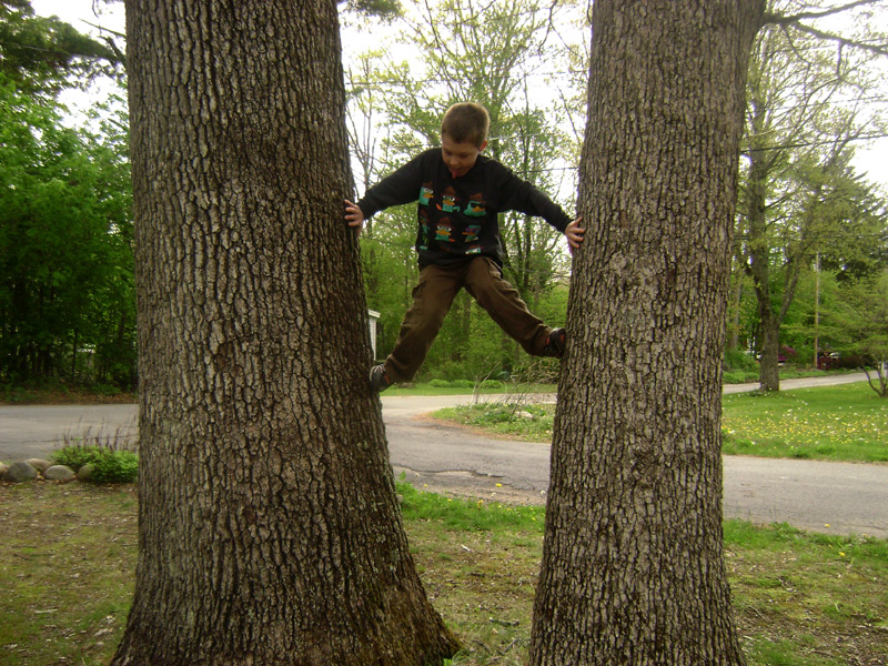 Couple of Squirrels The kids found a pair of trees in Grandma King's yard that were close enough to climb. At one point, Sean was at least seven feet off the ground!