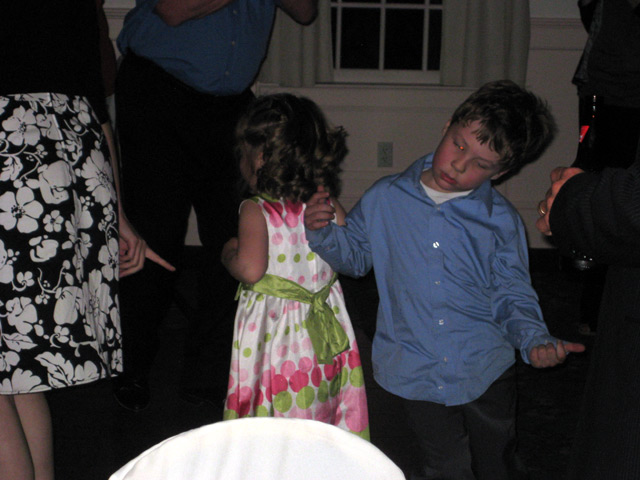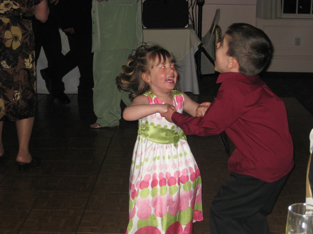 The kids were completely amped to dance at Auntie Andi's wedding. Even before dinner, they were out on the dance floor breakin' it down. Sean was all over the dance floor, tearing it up. I showed him a video on youtube a few weeks ago of people breakdancing, and he's been convinced that his dancing ability knows no equal ever since.