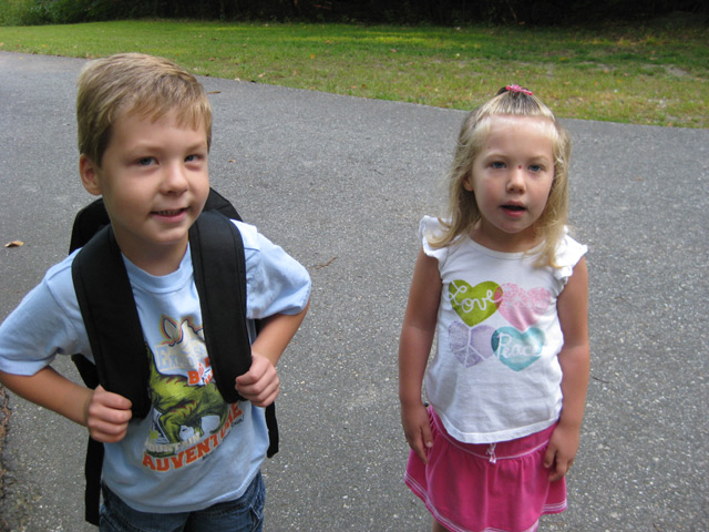 Last week was Sean's first week of public school! We were so nervous, but it's been going great. The night before his first day, he started talking about how scared and nervous he was, and how he didn't want to go. He started saying that he was going to miss the bus on purpose. We were really worried that when the bus pulled up, he was just going to flat-out refuse to get on it. But then, that morning after breakfast, he shocked us by getting super-excited and happy. He was practically dancing at the end of the driveway while we waited for the bus. Once it got here, he got right on and sat right down. That first day when we picked him up, he couldn't stop talking about how much he enjoyed his new school!