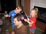 Haircut The kids sometimes like to set either Lori or I up in a chair so they can pretend to style or cut our hair. This particular time, they got pretty serious about it. Once I got tired of sitting on the floor, they moved on to cutting the bear's hair.