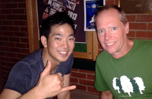 Dad and I took Carter to her first real concert last night - we saw Jake Shimabukuro at the Stockbridge Theater. This guy is phenomenal - he started playing when he was 4 (he's 36 now), and became famous by accident, essentially. Check out his wiki page to read the story. It was a great show last night - it was just Jake and a ukulele, blowing us away for two hours. He can make that thing do anything, from bluegrass, to flamenco, to classical music - at one point he even plugged into some effects pedals and pulled of some hard rock style, all-over-the -fretboard-at-lightning-speed craziness. Carter's eyes were as big as dinner plates half the time - and I'd have to admit my own probably were too. We got to meet him after the show, and I took Dad's picture with him. My only regret is that I didn't bring one of my ukuleles for him to sign! You'd better believe that I will next time, though!