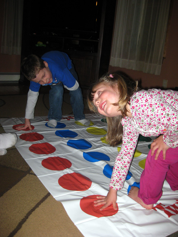 Recently Lori and I picked up a few new games to play with the kids - Operation and Twister.  Both have been a big hit.  The kids are surprisingly good at Operation - before watching them play, I was convinced that it would just be an exercise in frustration for them.  And they've really been enjoying Twister - although Carter has trouble making some of the cross-board reaches.