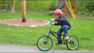 Yesterday Sean finally graduated to a two-wheeler! He went from not being able to do it, to riding with no training wheels on driveway, dirt, gravel - you name it! Carter was so jealous, that she asked me to take her training wheels off as well. I tried to convince her that she wasn't ready yet, and she would just get discouraged, etc., etc. But she talked me into taking them off anyway, and lo-and-behold! She was cruising right along, no problem! Lori took a little video of them riding around - click below to watch it.