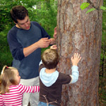 Last weekend we took a walk in the woods in back of the house. I've been out there plenty of times to explore out lot, and see what there is to see. But last Sunday I suddenly realized that I have actually never taken the kids out there just to explore. So Lori, the kids and I all headed out for an 'adventure'. Sean kept hiding in the ferns and asking if we could still see him - he's been very interested in the concept of 'camouflage' lately. Carter was interested in all of the different trees, but needed to be carried every time we came to any dense brush. For here, all those pointy plants and thorns were eye-high!