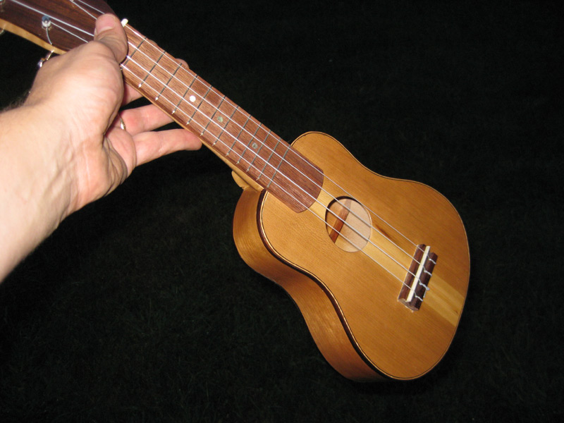 A few days ago I finished the last of the trio of soprano ukuleles I've been building. This one has got a maple neck and cherry top, sides, and back. I'm getting better at getting the action right on the first try - it's pretty near perfect on this one, with no real tweaking necessary. Now it's just a question of what to do with it - as I've already got two other sopranos I have built (this makes three). But at least I've cleared this one off of my plate and can start the tenors I've been itching to build.